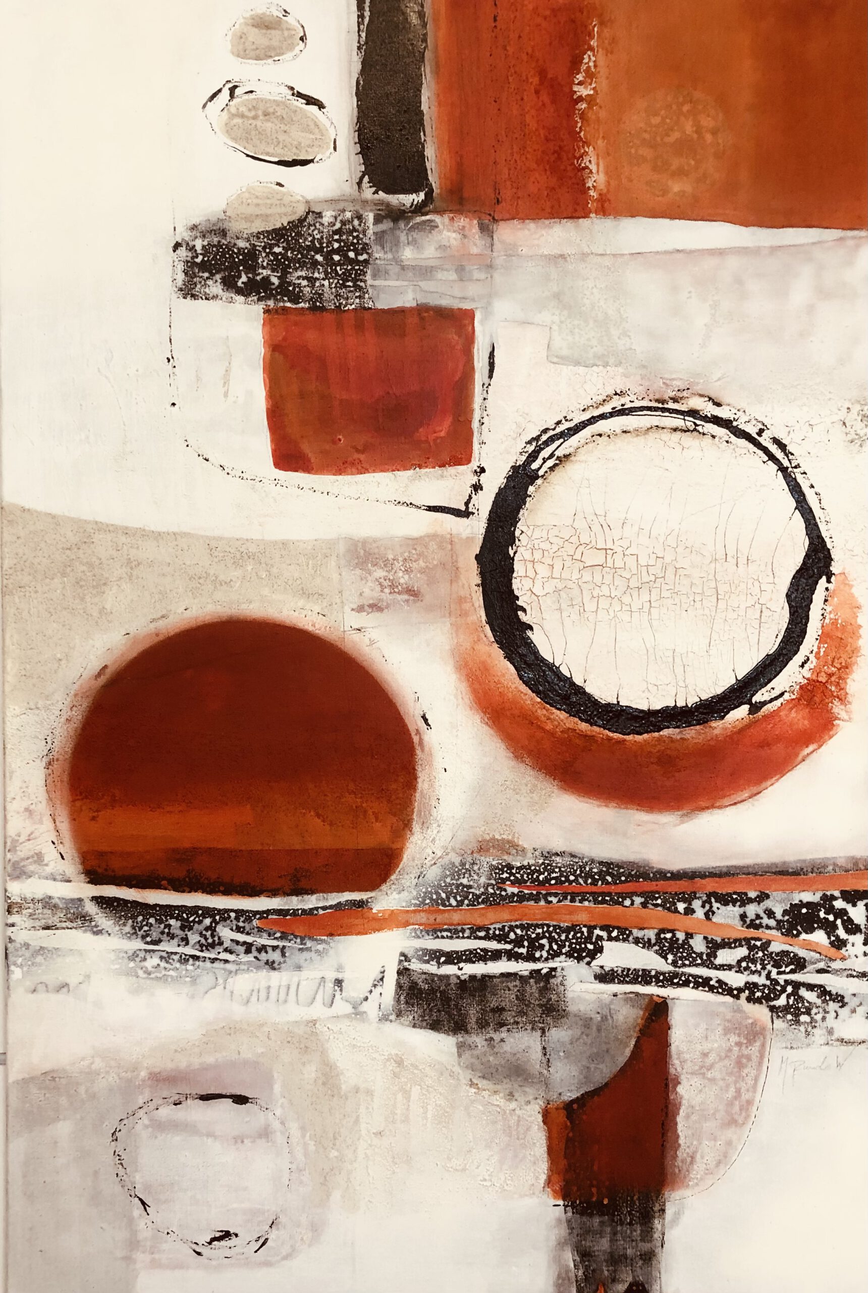 Im gemeinsamen Gespräch ging es zunächst um ihre persönlichen Anliegen und Wünsche rund um die Bildaussage. Auf jeden Fall sollte es sie und den Betrachter erden und dadurch Klarheit und Ruhe ausstrahlen. Bei der Betrachtung des Bildes sollte es möglich sein, bei sich selber zu bleiben. Es sollte auch einen Mittelpunkt haben, der Kraft und Halt gibt. Dabei sollte es eine größtmögliche Durchlässigkeit zeigen und vom Großen ins Kleine und damit in die Tiefe gehen. Auf keinen Fall sollte das Bild Zweifel zulassen, sondern die Offenheit für ein klares Ja im Hier und Jetzt bleiben zu wollen, vermitteln.