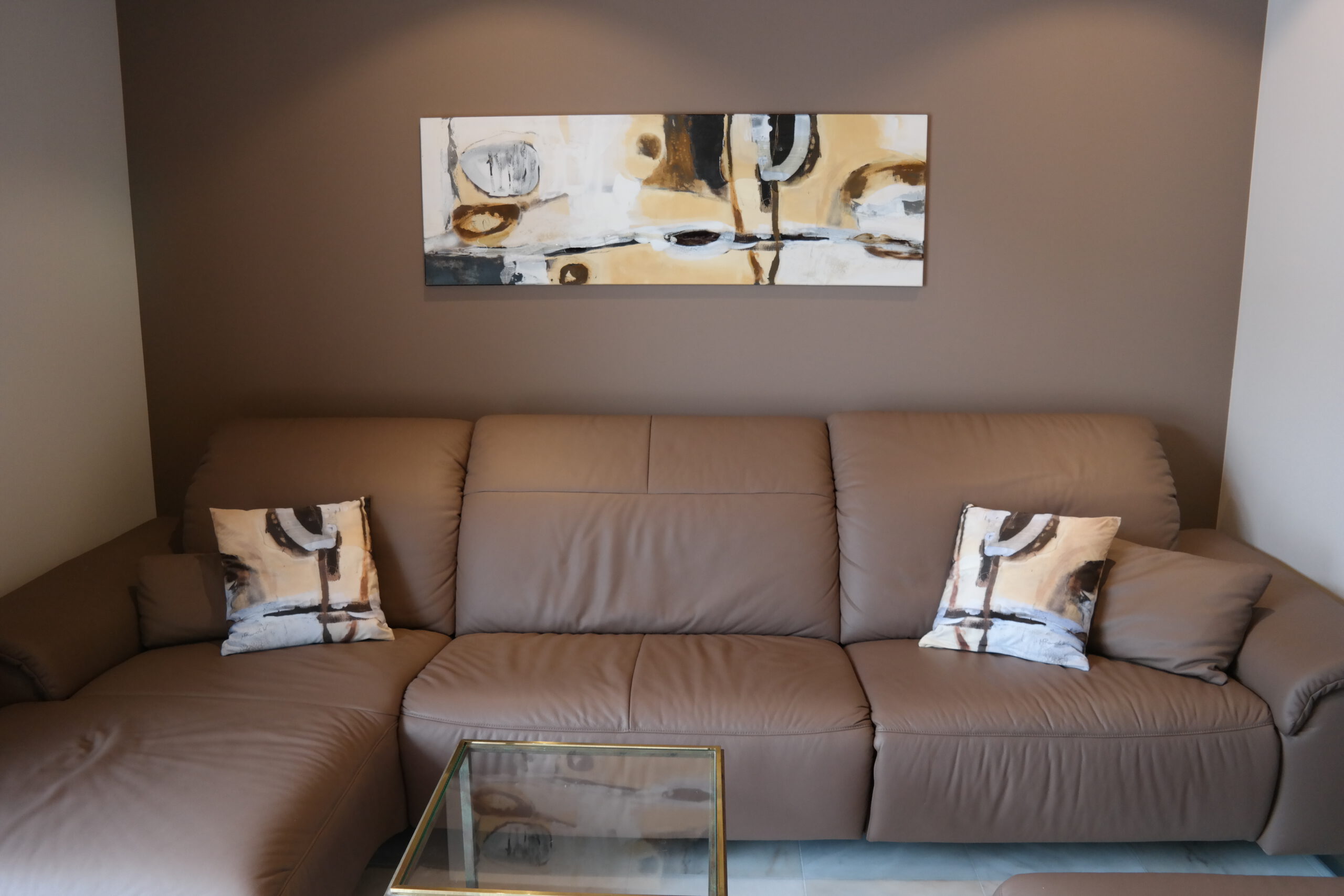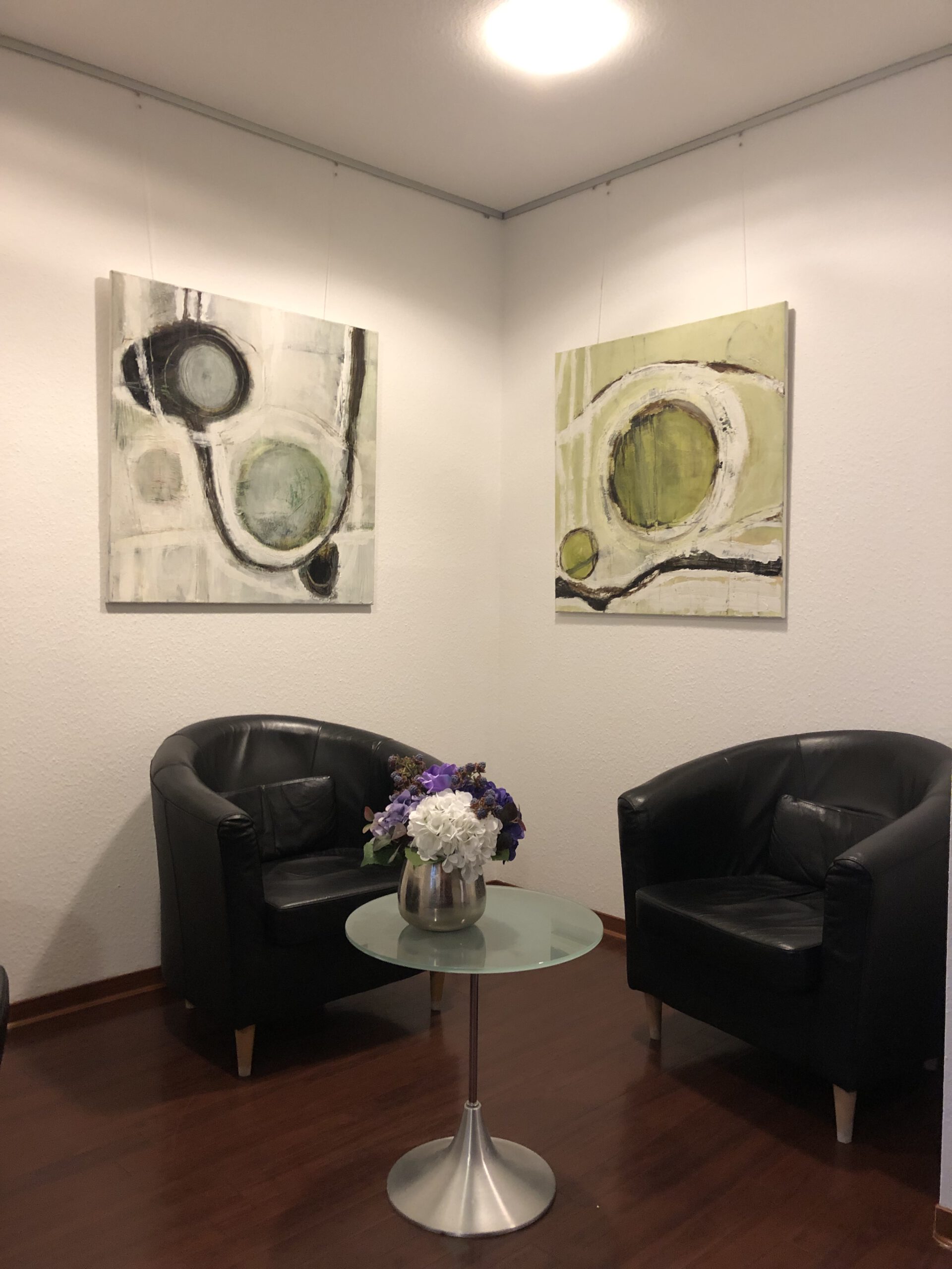 Sie richtete ihr besonderes Anliegen an mich, ein persönliches, abstraktes Bild für sie zu malen. Es sollte sowohl bei ihr, als auch bei den Patienten mit Leichtigkeit das Zusammengehörigkeitsgefühl stärken und die Behandlung unterstützen.